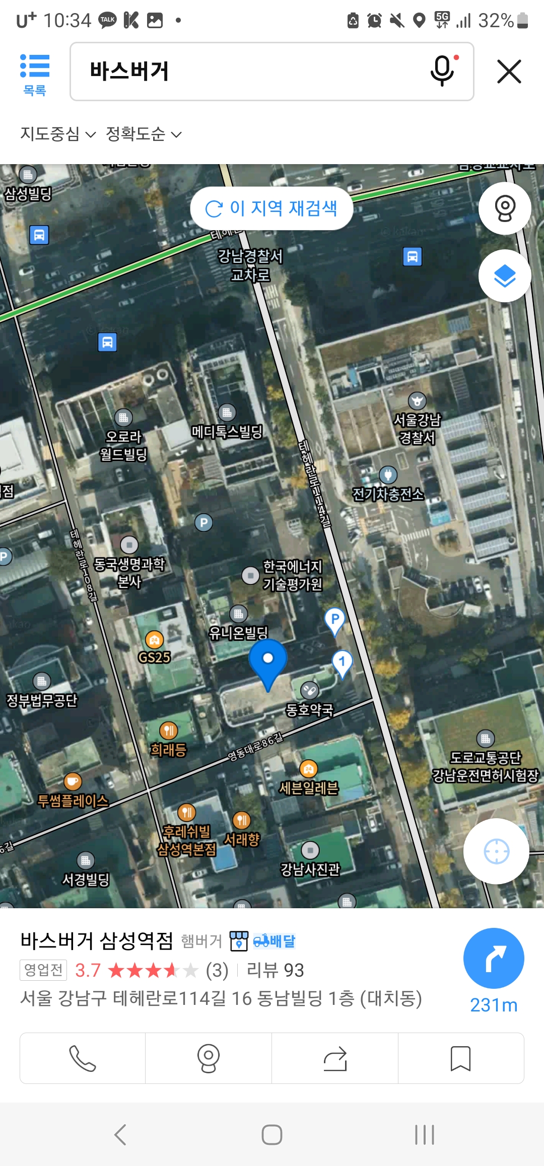 위치는 강남경찰서 앞 음식점 거리에 있습니다.