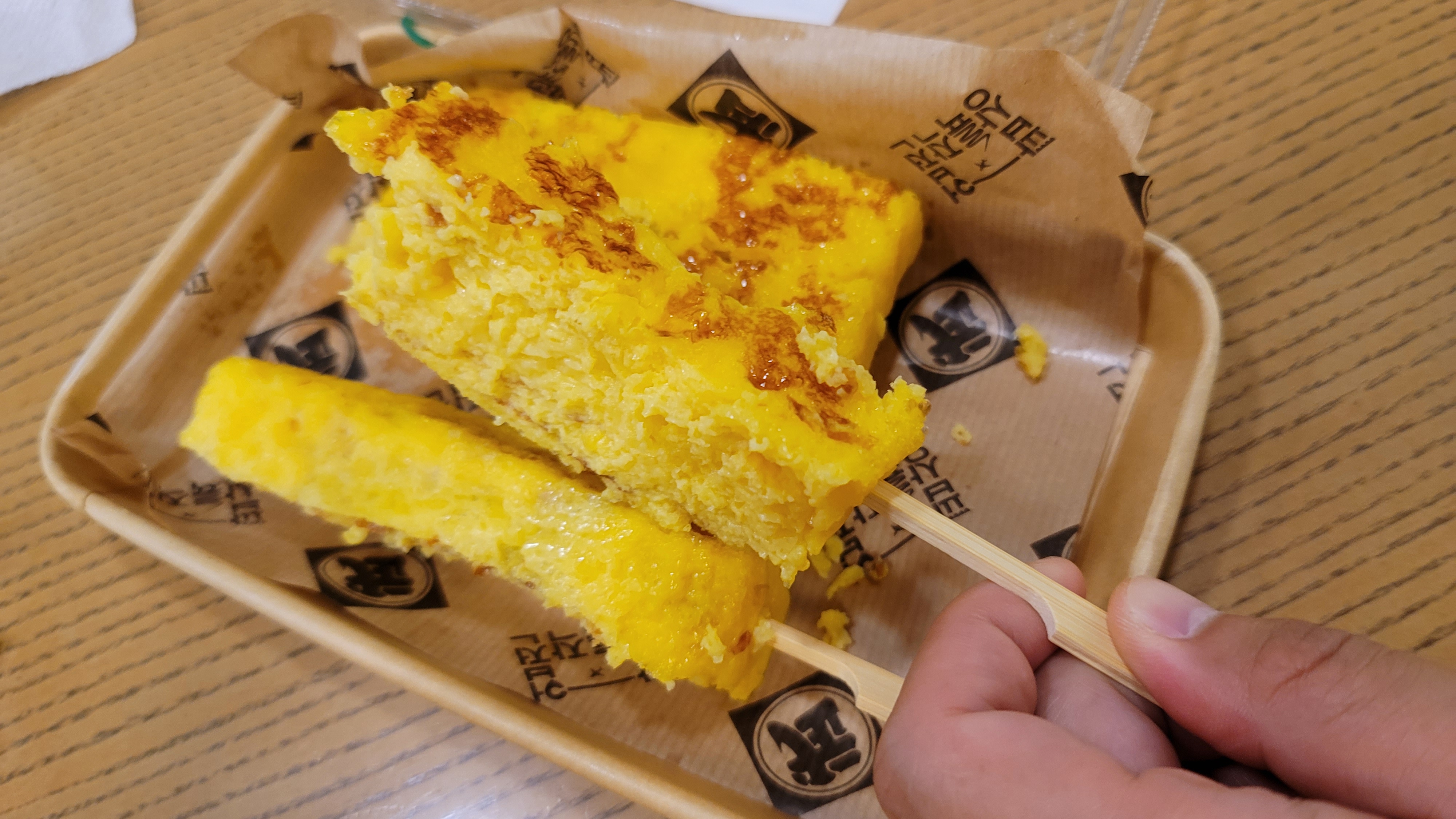 달콤한 맛이 가미된 계란말이고 한덩이 8000원 꼬치로 4개로 나눠서 먹었어요.