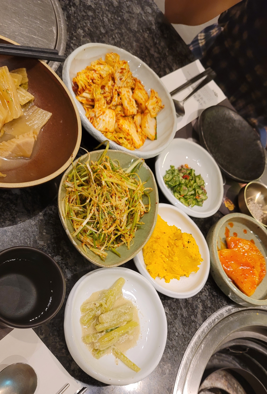 절인배추, 아삭배추, 달콤단호박, 새콤 오이와 파채, 석밖지와 고소한 줄기나물 깔끔하고 좋았습니다.