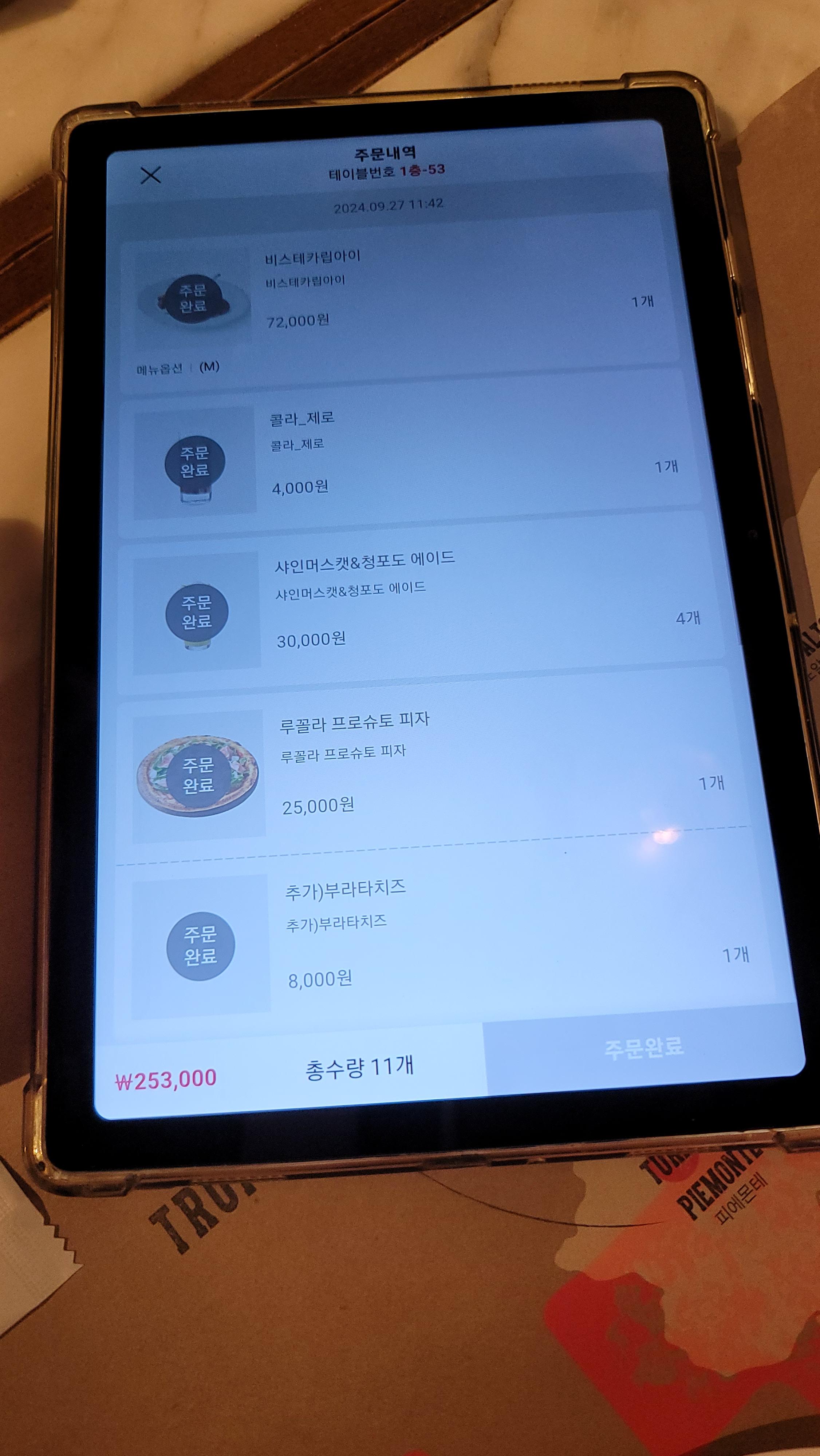 자리에 태블릿으로 주문