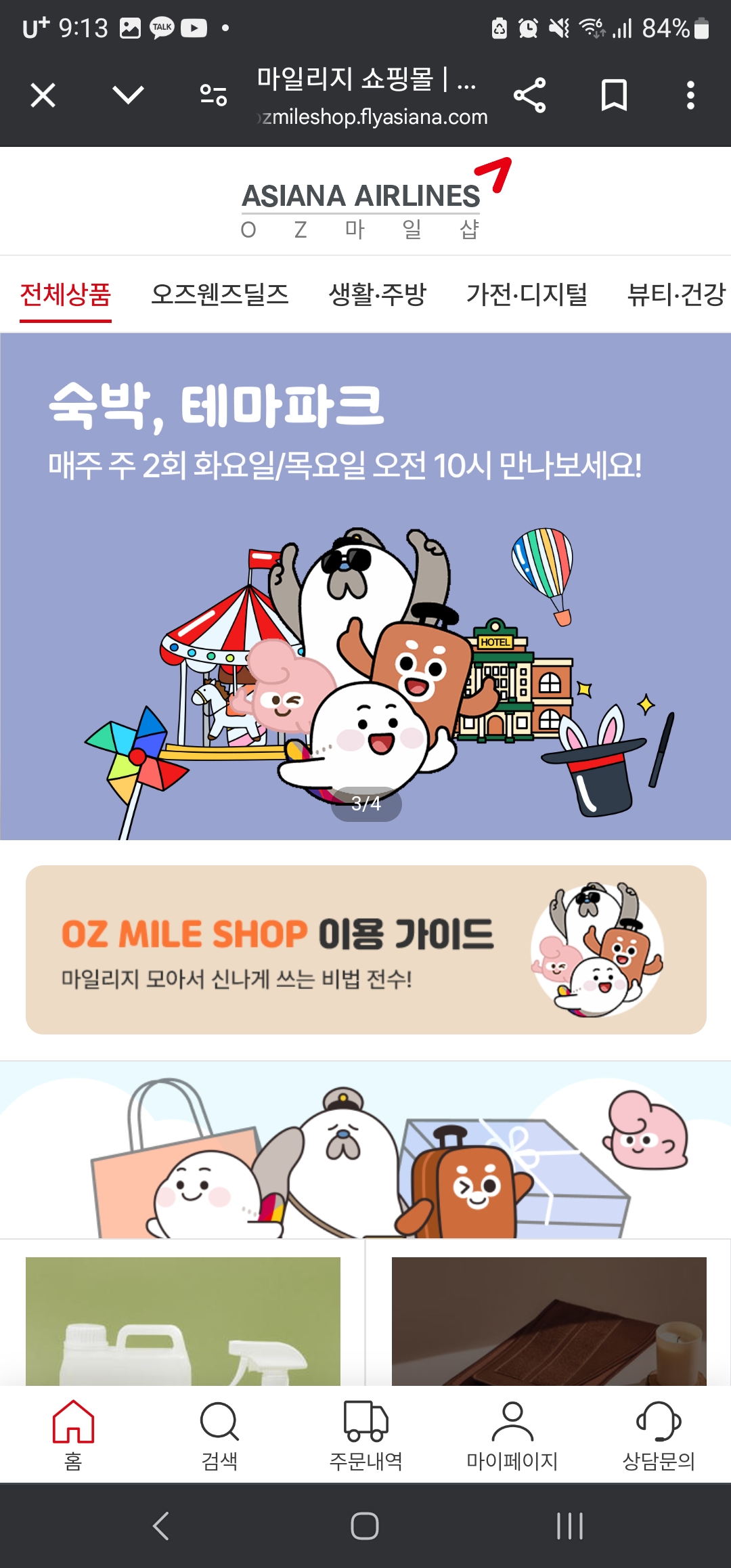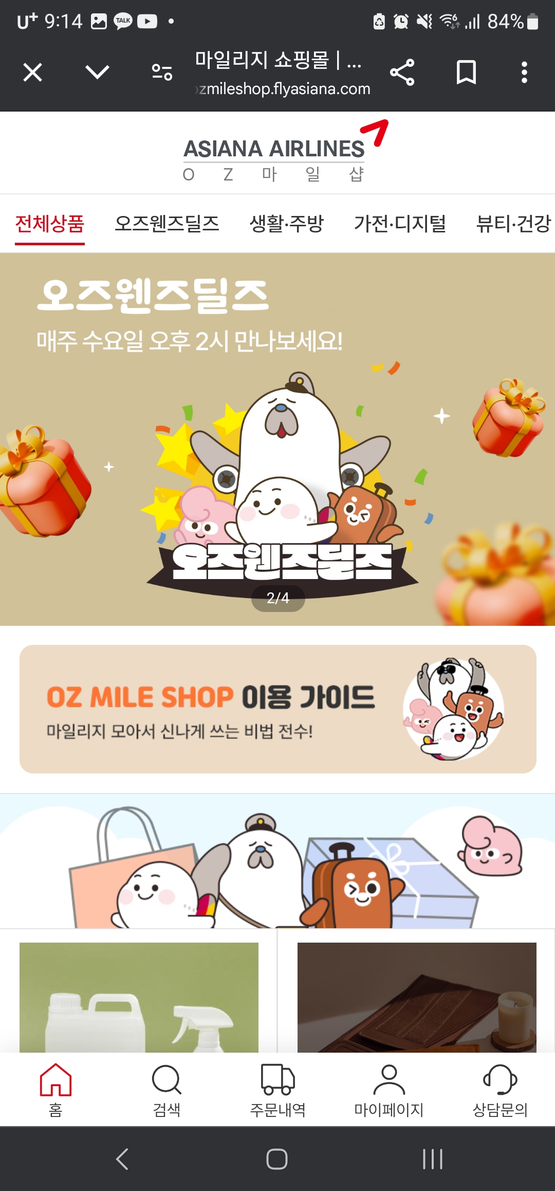 오즈마일리지샵에 들어가서
