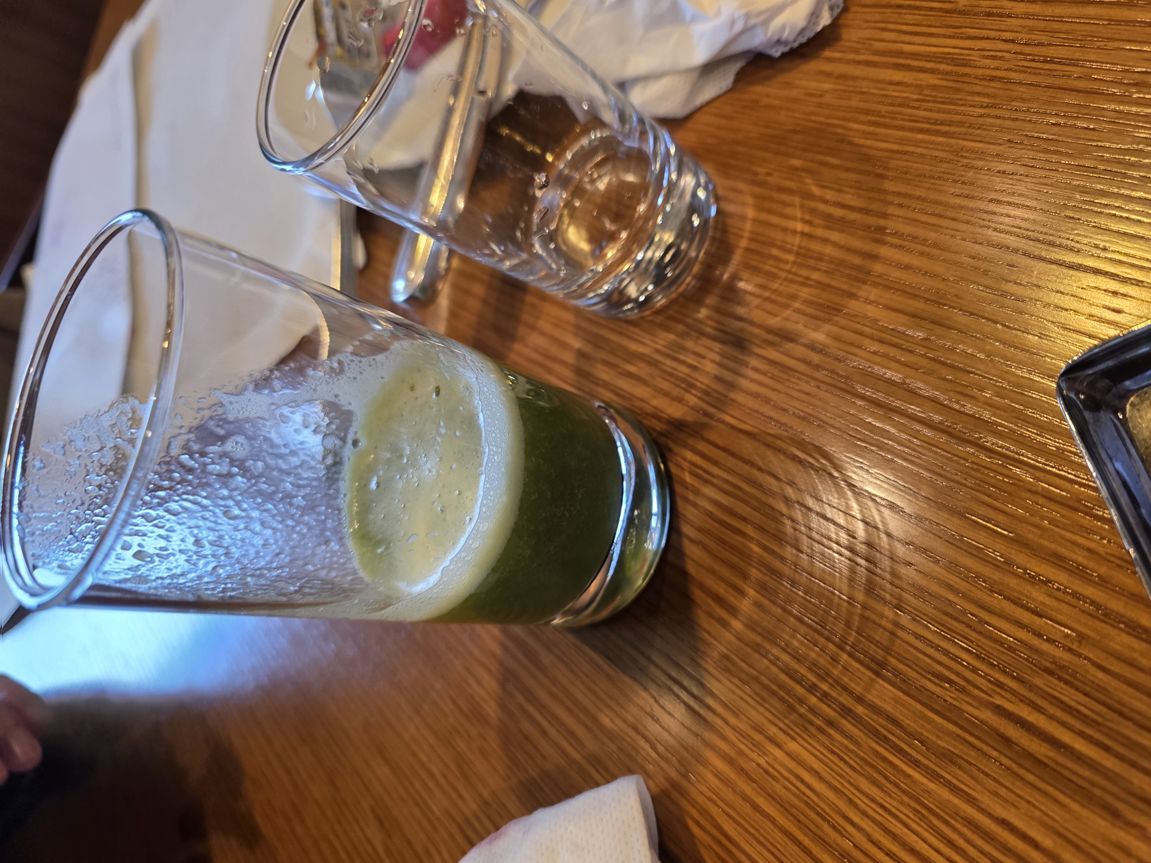 * 디톡스 주스 (초록색), 빵, 에그 스테이션 만족.
