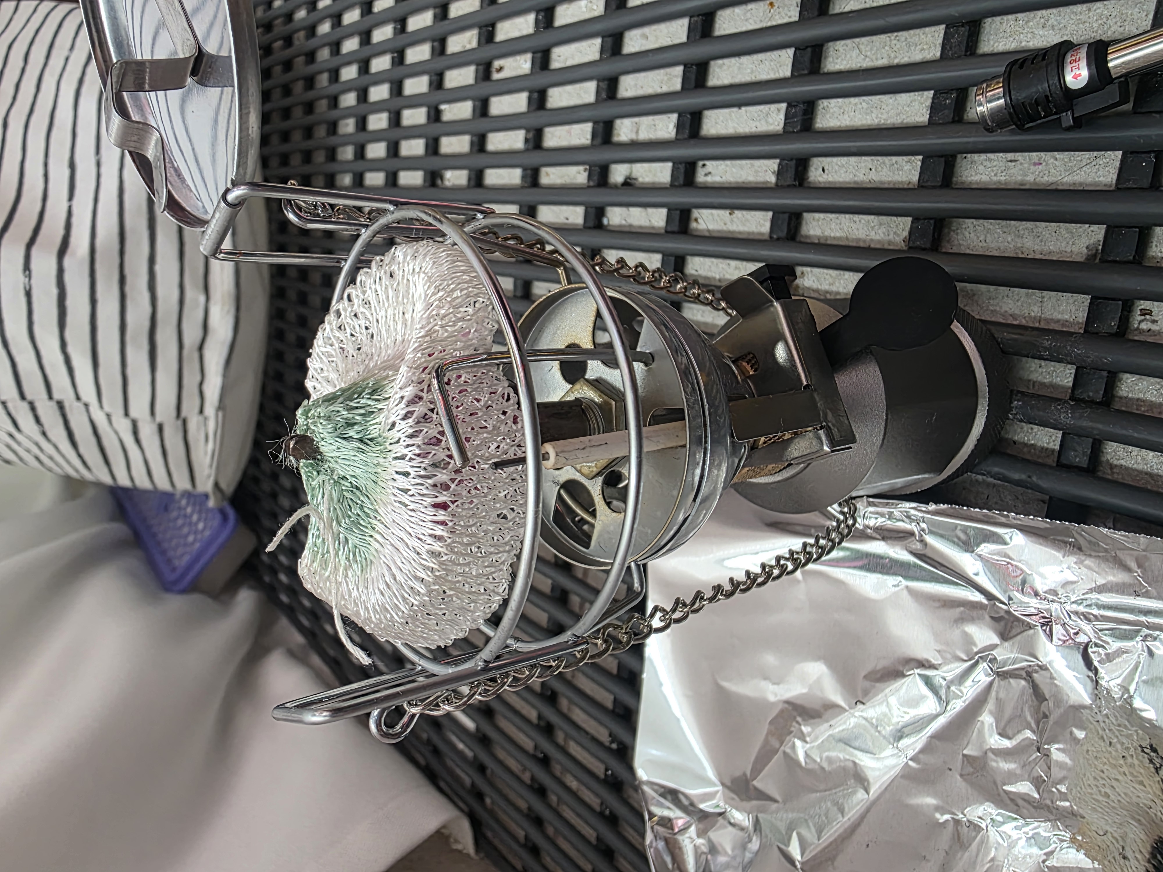 제품에 같이포함된 것과 같이 위아래 고정되는 심지가 필요합니다. 아래는 대등심지로 시도해봤다가 실패한 사진입니다.
