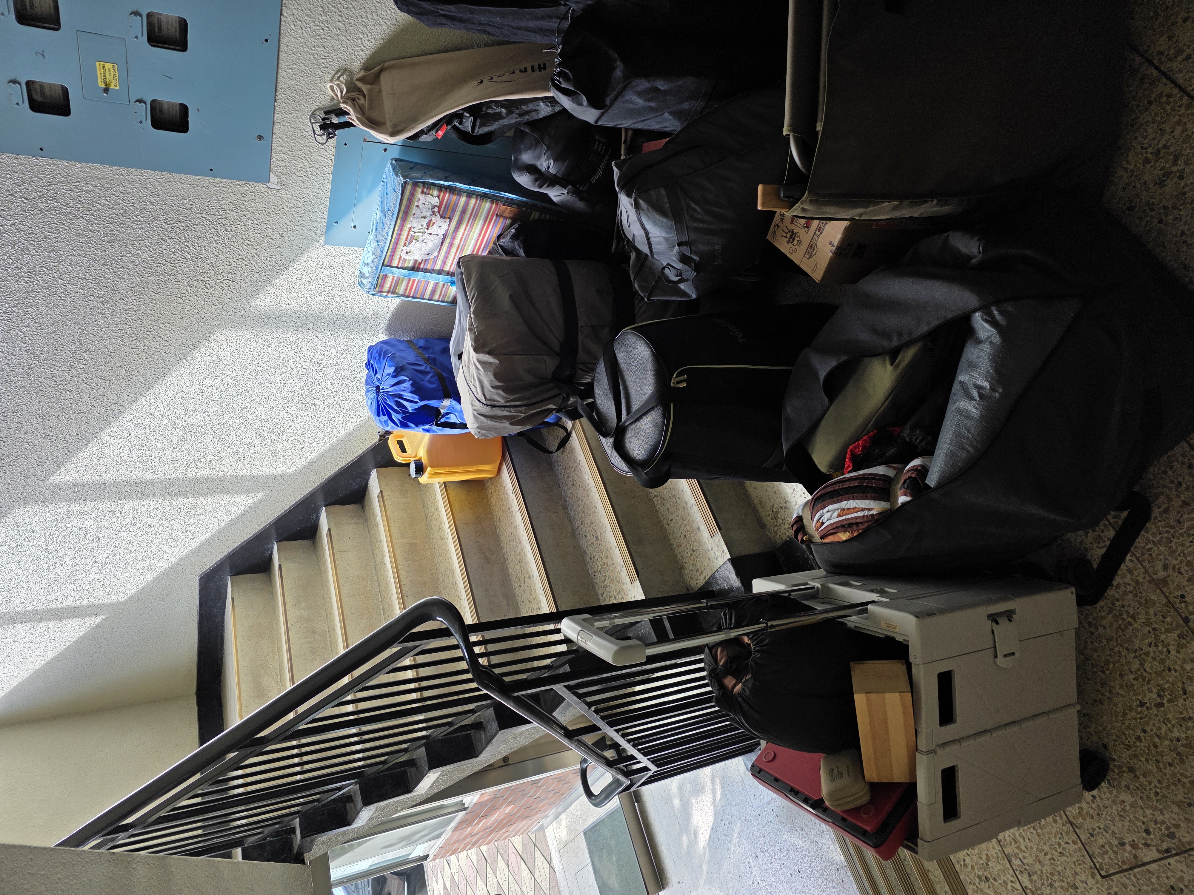 저기에 아이스박스, 옷가방두개. 음식가방 한개 더