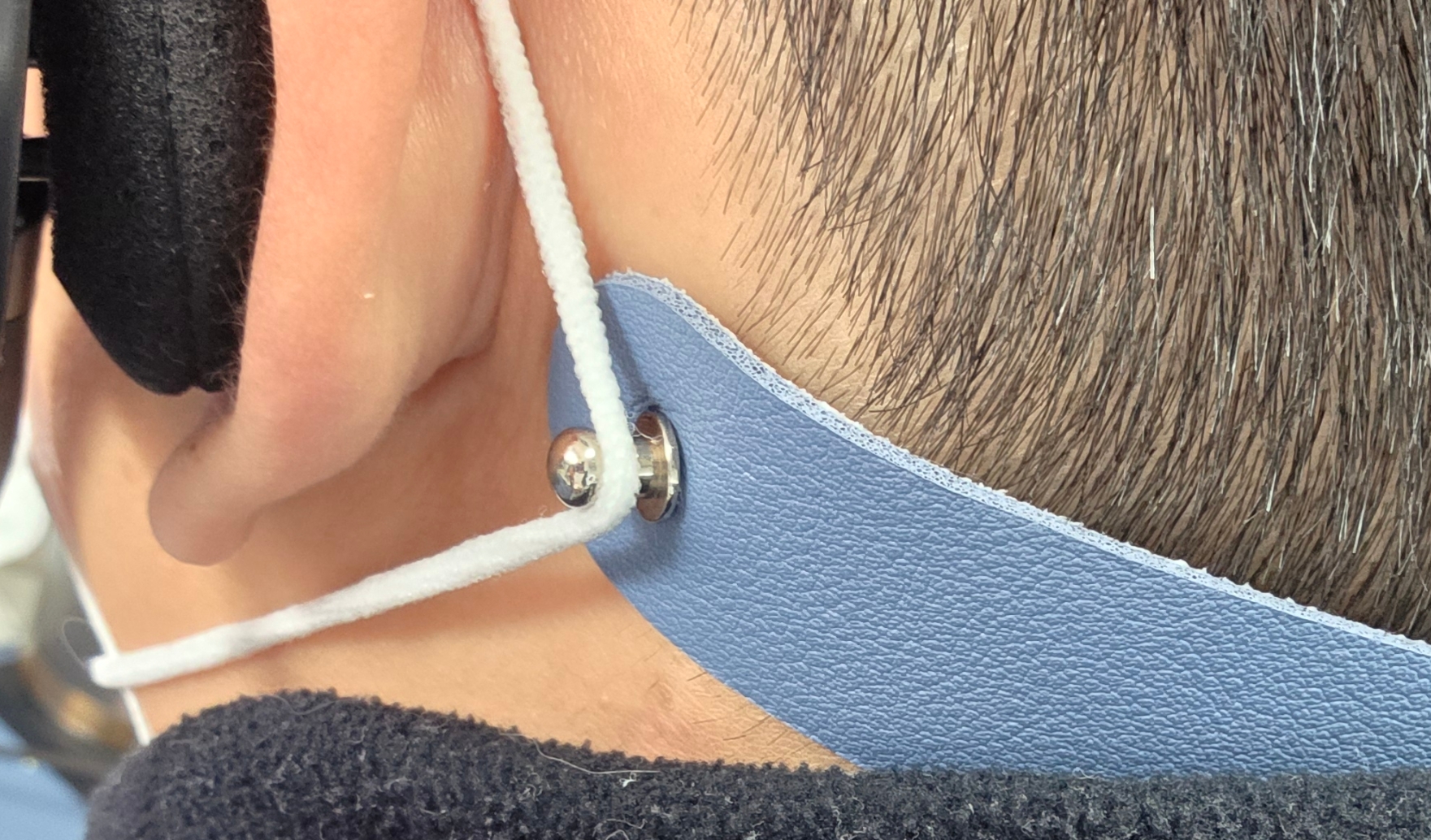 저는 이 문제를 해결하기 위해 이것저것 시도해보다가, 문득 '귀에 닿지 않게 하면 되지 않을까?' 하는 단순한 아이디어에서 출발했습니다. 그리고 그 결과는… 단 하나의 끈으로 통증을 완벽하게 없애는 것이었습니다!