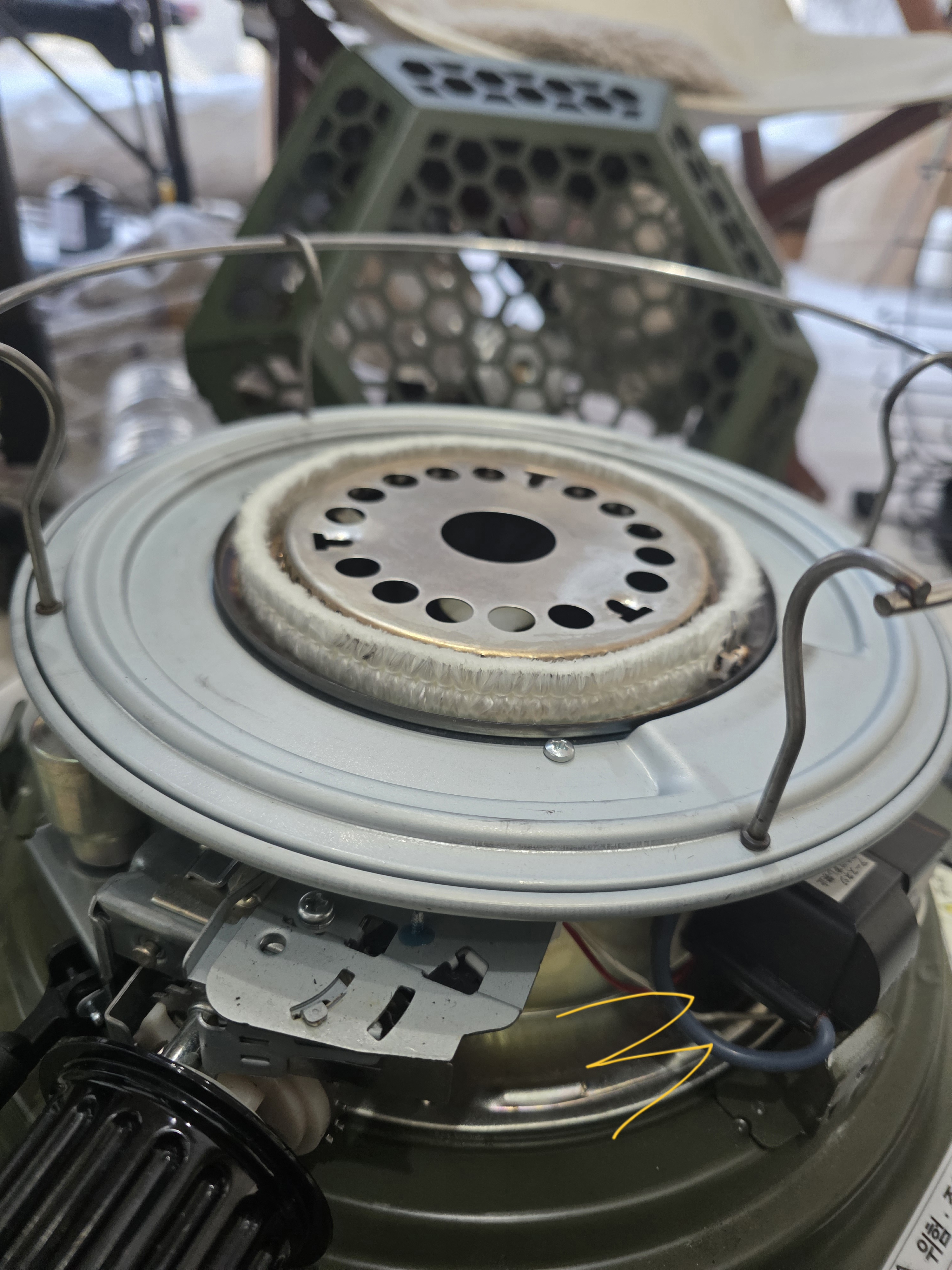 심지 교체 전, 옴니 난로 분해 영상을 보며
