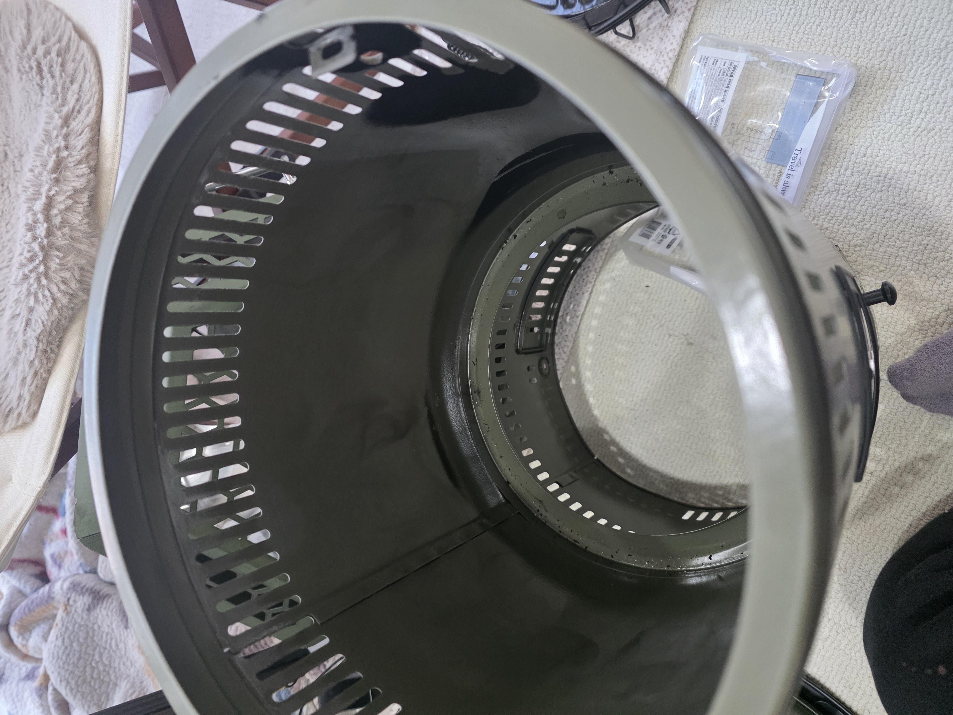 I wiped away all the soot and tar that had accumulated from the uneven flames. Seeing the clean interior felt incredibly refreshing! When reinserting the wick unit, rotate it slightly for a smoother fit.