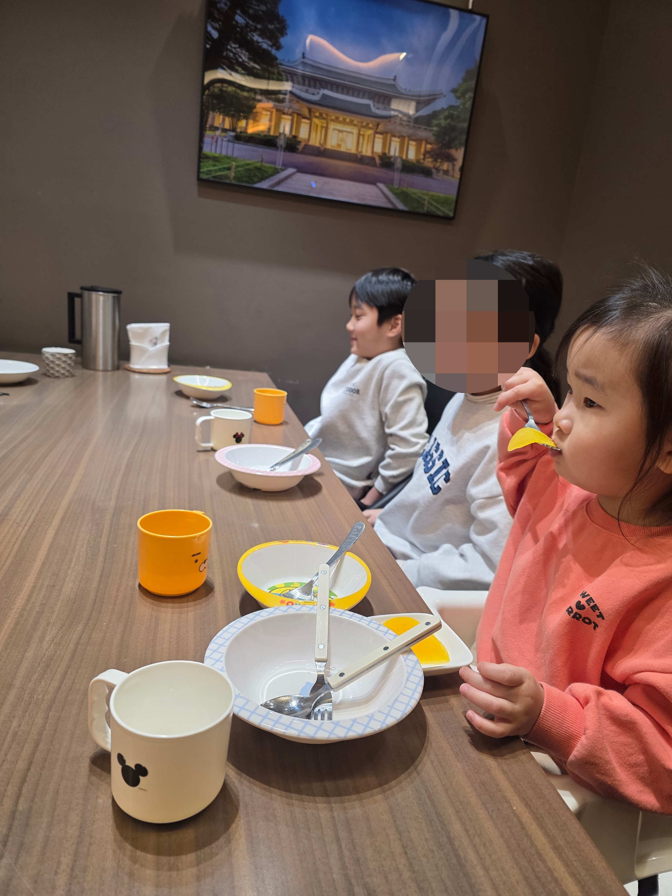 For Saturday lunch, we visited a local restaurant called 'Cheonsang.' The Mapo Tofu and Sweet and Sour Pork were hits with the kids, though the Gwanghwamun Jjamppong left a bit to be desired. While stopping by Starbucks, we had a little scare from a toy snake in the parking lot and even saw someone with a parrot on their shoulder!