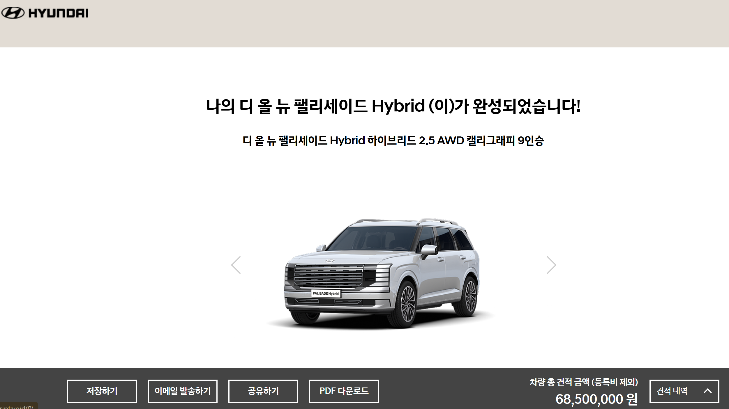 | 항목 | 팰리세이드 HEV (캘리그래피) | GV80 가솔린 (신규 구매 시) |