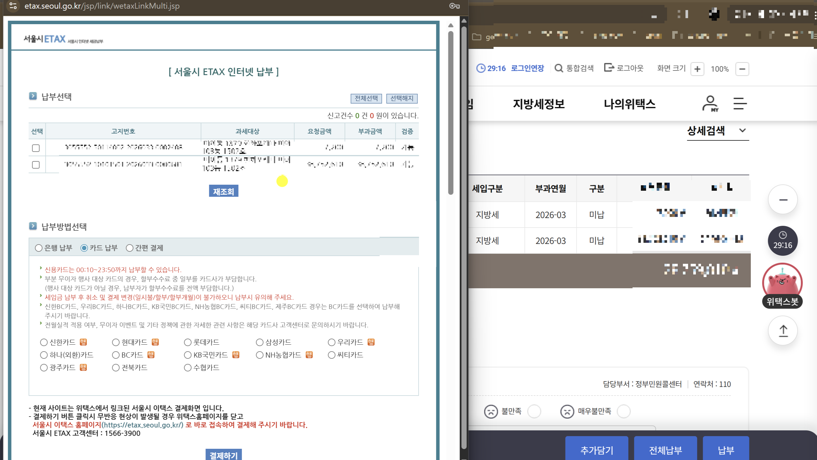 오늘은 취득세 납부를 위해 카드를 알아보다가