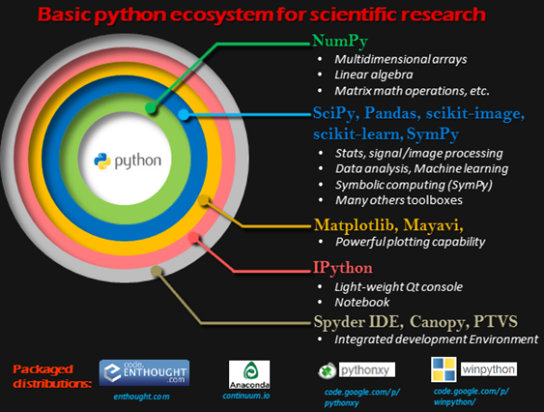 위 그림에서 보듯이 파이썬 생태계라고해서 매우 많은 수의 라이브러리가 있고