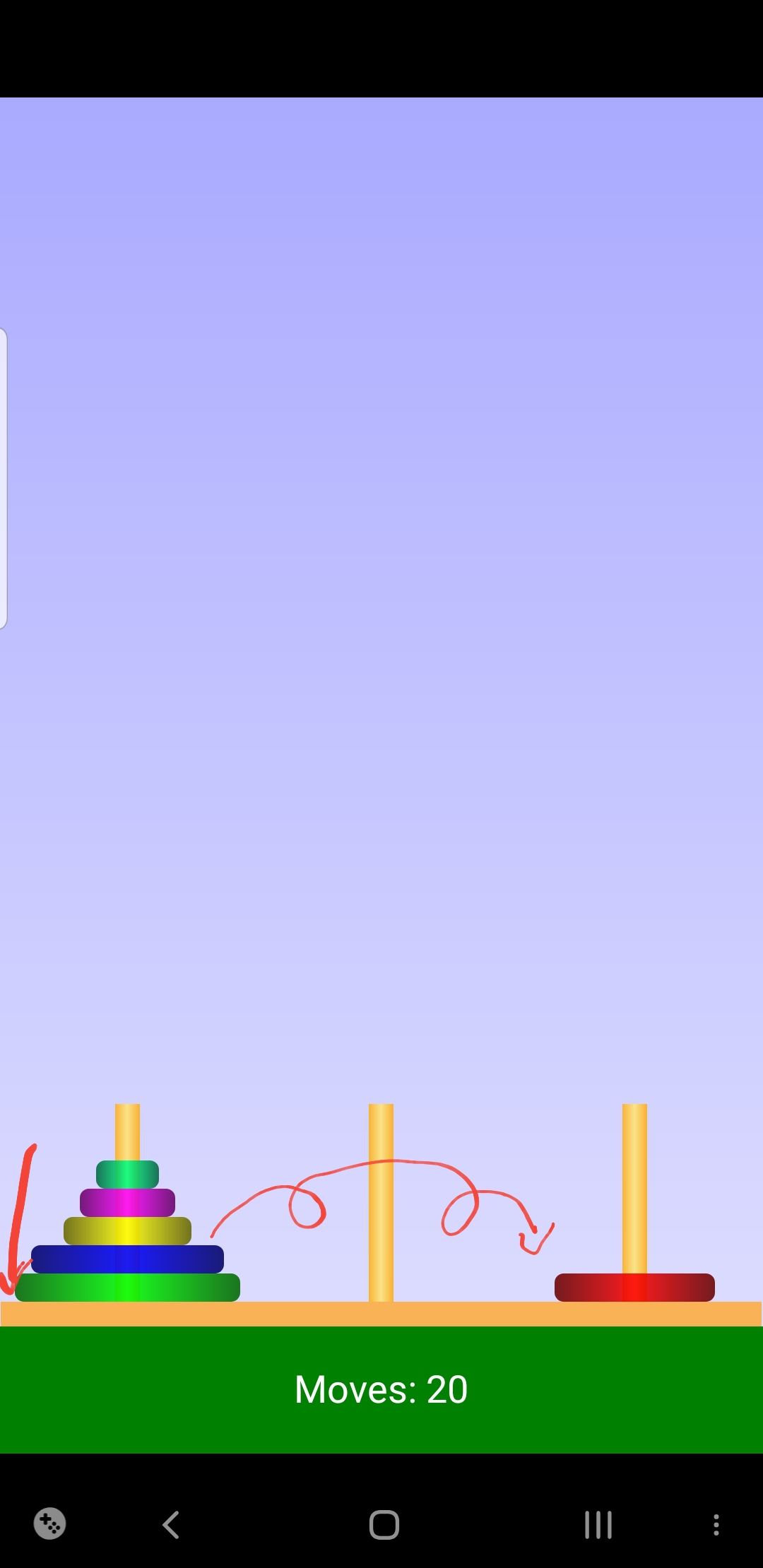 - 리듬이 있다. 가작 작은 원판 기준으로 한칸씩 이동해가는데 세개의 기둥이 연결된 긴 선 상에 있다고 생각하면 쉽다.