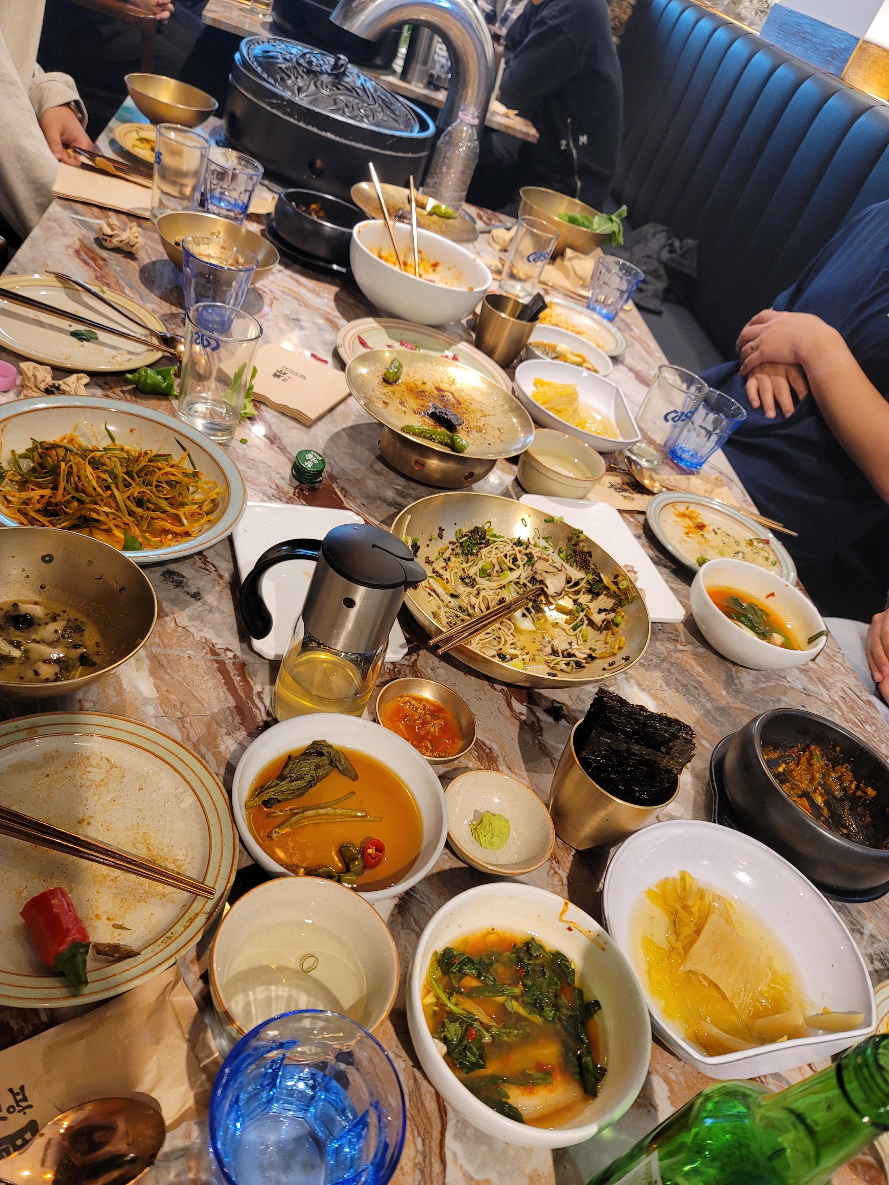 물에 씻은 듯한 김치(아마 멸치 다싯물에 담궈두는듯)가 맛이 좋았습니다.